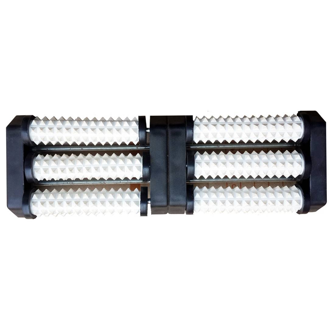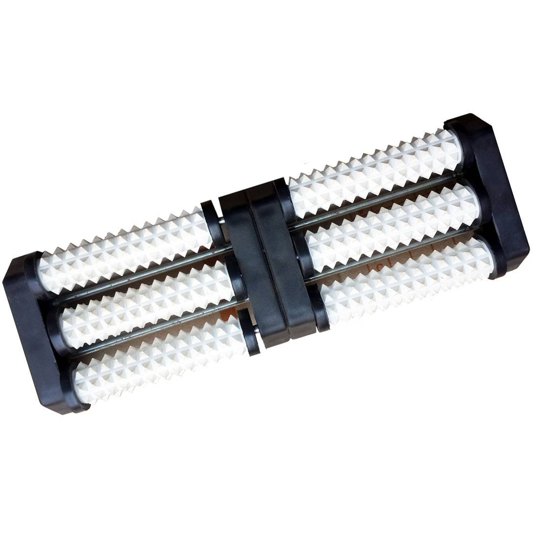 • Foot acupressure can be done at your work or at home, it has two plastic roller on which Pyramid Spikes press the Foot points, you can massage left and right leg simultaneously by just rubbing the feet surface to the plastic rollers. This solid design made of virgin ABS plastic helps you to release tension and induce a state of deep relaxation.